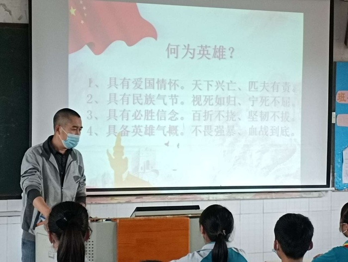 4月3日下午的班会课上各班开展了“缅怀革命先烈,弘扬红色精神”的主题班会。班会课上,各班主任先通过课件向同学们讲解了清明节的意义,生动地介绍刘胡兰、杨靖宇、邱少云、黄继光等抗战时期的英雄人物事迹,让同学们了解为了革命事业抛头颅、洒热血的仁人志士和革命烈士。接着,通过视频观看了一些革命先烈的英勇视频,整个教室都弥漫在对革命先烈的敬仰和缅怀的气氛中。最后,同学们纷纷表示自己要弘扬英雄精神,更加认真学习,长大成为有社会担当的人。