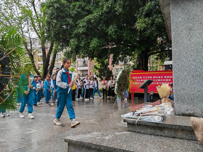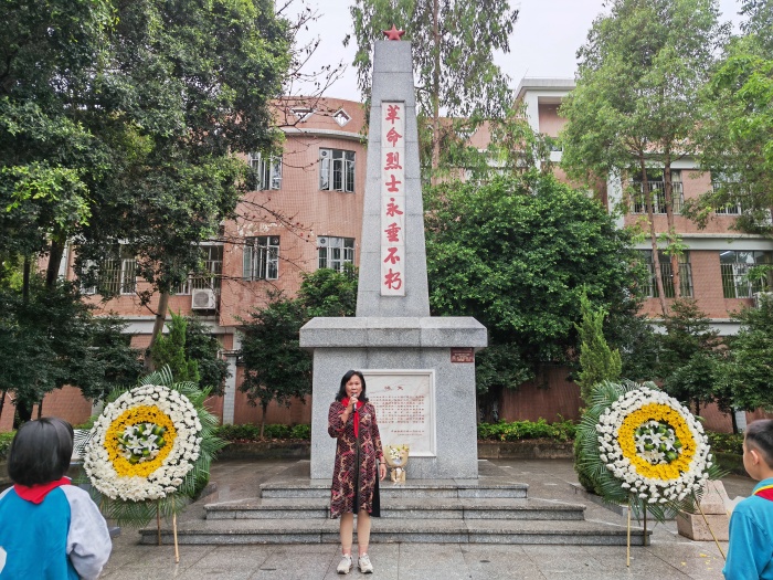 4月3日上午接源小学的学生代表来到民众公园参与民众街道少工委组织开展的烈士墓祭扫活动。活动最让人心潮澎湃的环节是聆听民众街道关工委“五老”奶奶李玉珍宣讲新平村陈十顷烈士们英勇抵抗反动派残匪反扑、五位烈士牺牲生命平息暴乱的悲壮事迹。李玉珍奶奶声情并茂、情绪激扬的宣讲似乎把在场的师生拉回了那个壮烈的场面,先辈们无私奉献、为国捐躯的精神深深地打动了在场师生。师生们手捧鲜花排起长龙一个接着一个向烈士碑鞠躬敬献,朵朵鲜艳的菊花代表着后辈对先烈们的无限哀思。