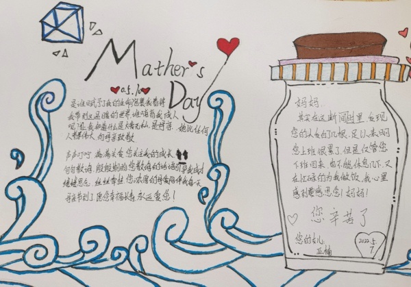 据了解,在母亲节前夕,同学们通过视频短片或照片了解生命孕育的过程,还有妈妈悉心哺育照料的过程,通过短片和图片同学们更加清晰的懂得一个生命是怎么来到这个世界的,也让同学们懂得妈妈孕育和哺育的辛苦。母亲,是世界上最伟大的人,母亲也是这个世界上为孩子付出最多的人,对于母亲的付出,没有什么比感恩之心更能表达对母亲的爱而"感动。母亲节当天锦标学子有的同学为妈妈捶背、洗脚、做家务,感受母亲无数次为孩子付出的不易;有的同学为妈妈揉揉肩、捶捶背,同学们把这份特别的爱献给伟大的母亲;有的给妈妈唱首歌;有的同学为妈妈制作精美的手工贺卡;有的同学给妈妈写一封信;还有的同学看着妈妈的眼睛,小手牵大手,深情对望,心灵感悟,深情地对妈妈说:妈妈我爱你。