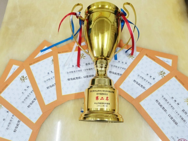 2022年中山市中小学生乒乓球公开赛于2022年6月25日—26日在中山市乒乓球馆举行,锦标学校乒乓球队在76所中小学校中顽强拼搏,再创佳绩。本次比赛共有7人进入各组别单打前八名,小学组荣获团体总分第四名,初中组荣获团体总分第二名。