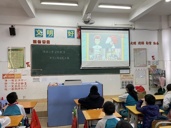 学校还利用校园广播、国旗下讲话、校园LED、学校宣传栏、班级宣传角、班级微信群等向师生宣讲相关的交通安全知识。