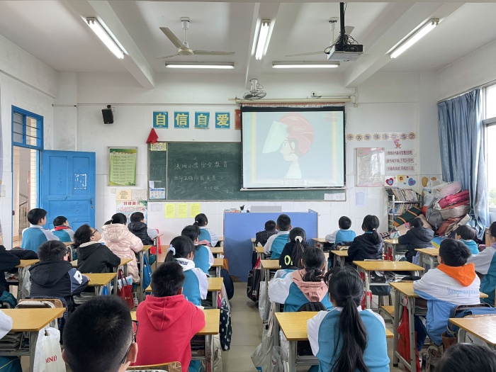 “据统计,2020年全国道路交通事故伤亡人数,驾驶电动自行车的伤亡高达5万多人!研究表明,一旦发生事故电动车使用者颅脑损伤致死的比例高达80%,为切实保障生命安全、平安出行,必须佩戴安全头盔。”班会课上,各班班主任通过身边的实际案例、详细的数据向学生讲述不戴头盔的危险性。引导学生树立安全出行的观念,养成骑乘自行车、电动自行车自觉戴头盔的好习惯。
