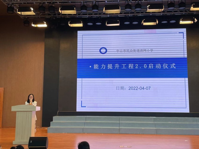 为促进信息技术与教育教学融合创新发展,推动全校教师信息技术应用水平的提升,迎接中山市信息技术应用能力提升工程 2.0 整校推进工作,2022年4月7日上午,“浪网小学能力提升工程2.0启动仪式”在浪网小学阶梯室举行,学校副校长杨岚主持,全校老师参加。