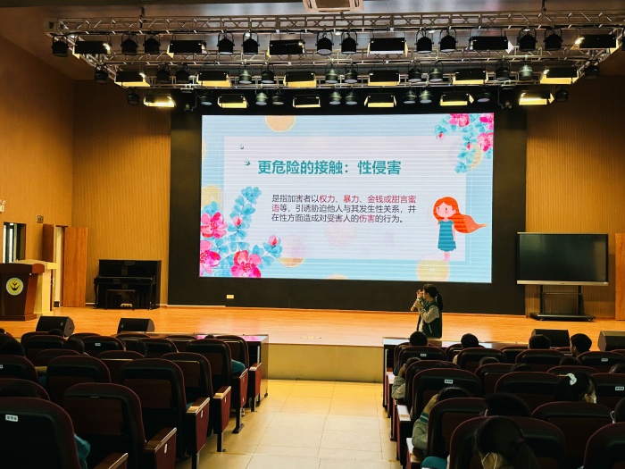 最后孙老师通过案例着重分析了性骚扰、性侵害形式、容易发生性骚扰和性侵害的时间与场所以及如何防止性侵害等问题。在这个过程中仔细分析了预防发生性侵害的措施及发生性侵时或性侵后应该采取的对策:针对遇到性侵时的应对,在周围人多可求助时,要坚定大声拒绝并求助;在和坏人独处无法求助时,要想办法安全逃脱,生命安全第一位。整个活动,学生认真聆听,积极参与互动。