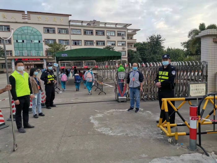 为了保障学生安全、解决放学时段的校门拥堵难题,民众镇三民学校建设了“校门义工队”,义工队成员由警察、家长组成,家长是本着自愿参与、热心服务、积极奉献的原则,主动参与学校校门安全管理活动。