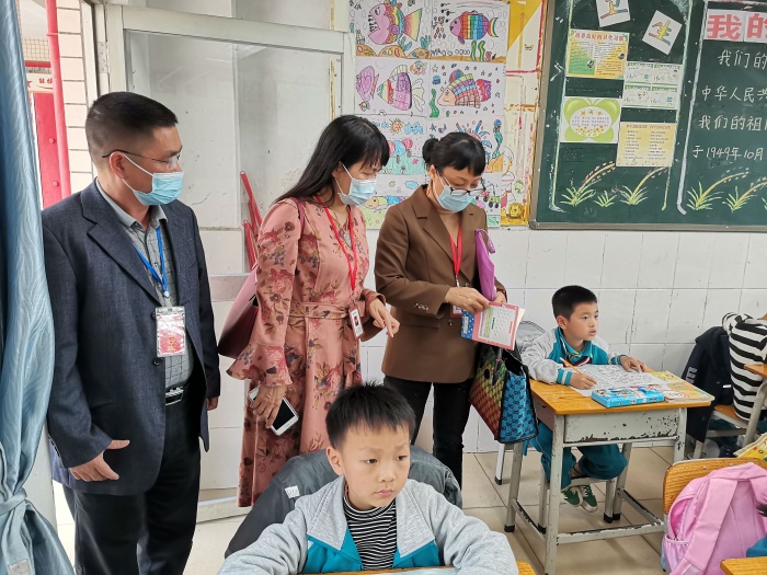 听取学校汇报后,督导组还走进室场,实地检查“双减”和“五项管理”的具体落实情况。他们与同学交谈,了解每天各科作业量以及完成的时间,查看作业的类型,询问是否需要家长批改等。了解课后托管的开展时间,同学们的参与情况等。