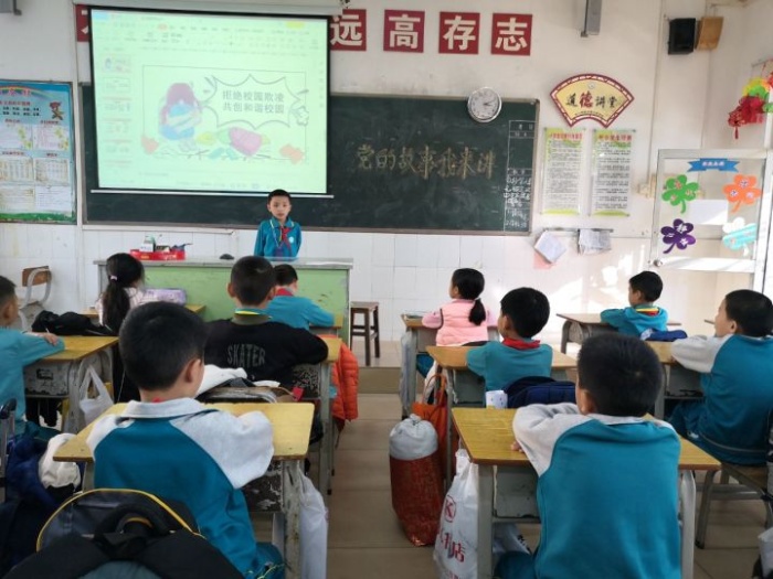 三民学校一至六年级共32个班级,每个班级都有2位小小宣讲员,通过他们的宣讲,能够带动更多同学积极参与,促使每个人都可以随时随地讲出党史故事、红色故事。这种以点带面的方式能让更多的孩子了解中国共产党的百年历史。