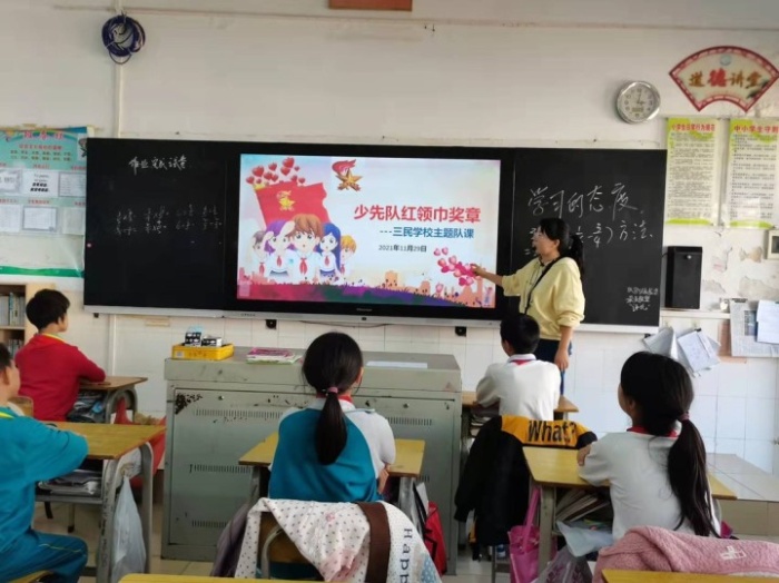 深入贯彻落实习近平总书记关于少年儿童和少先队工作的重要指示精神,庆祝建党100周年,树立和增强少先队员光荣感,构建人人可行、天天可为、阶梯进步的“红领巾奖章”评价激励体系,2021年11月29日,三民学校全面开展“红领巾奖章”争章活动。