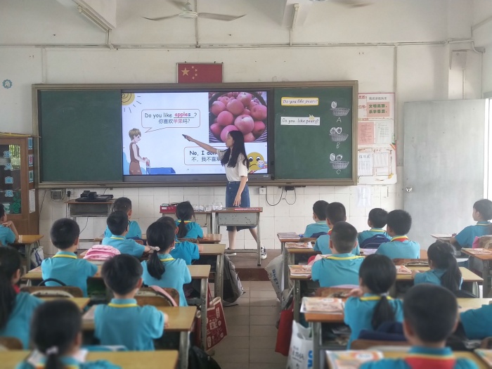 端午六月,万木葱茏。为了提升学校英语科组的教研教学水平和多媒体技术应用能力,不断深化学习研讨能力,促进教育教学与信息技术深度融合,优化课堂教学质量,6月8日,新平小学英语科组黎雨晴老师在三(2)班就《Unit4Do you like pears?》上了一节多技术融合教学的公开课。