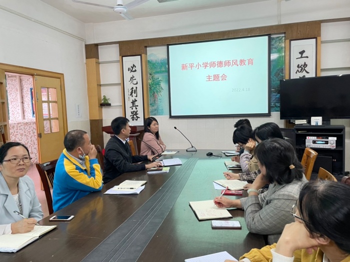 为加强意识形态教育,提升教师政治素养,增强教师法律意识,夯实师德师风建设,提升教师职业道德素养,规范教师行为,4月18日下午,新平小学在会议室召开师德师风主题教育会。