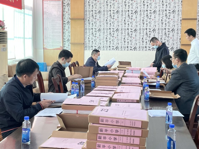 新平小学陆锐勋校长向评估组介绍了学校的现状,评估组对校园环境、教室、各功能室等进行了实地察看。评估组主要对学校档案资料进行了详细查看,对新平小学的依法办学、工会工作、队伍建设、文化宣传、德育、团队、教学、体卫科艺、安全等精细化管理工作进行督查,全方面充分了解学校素质教育目标管理工作,全面评估学校推进素质教育目标管理情况。