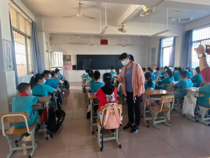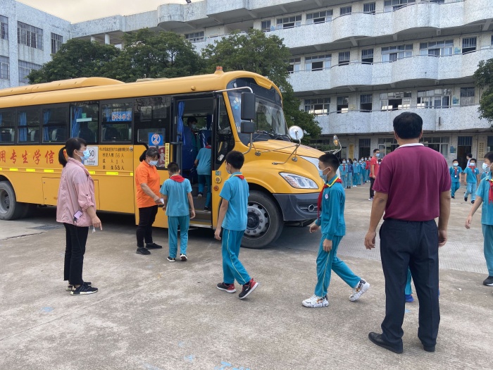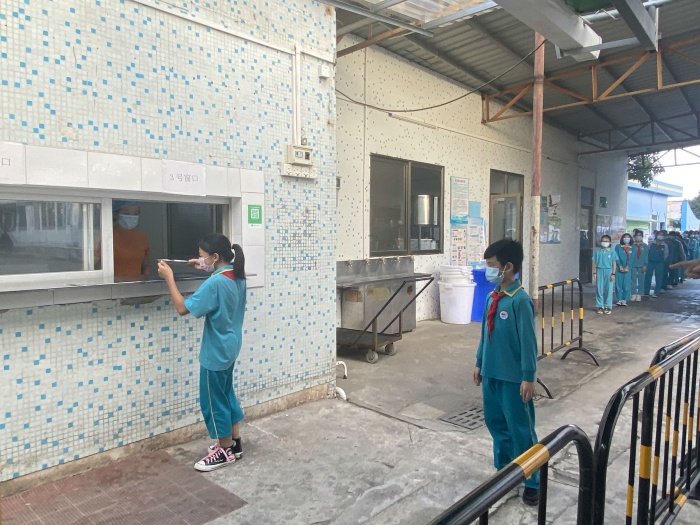 下午3:30点,演练正式开始,陆锐勋校长为本次演练的总指挥;本次分为4个主要的演练内容,第一:早上乘校车演练;乘车学生戴好口罩,学生之间前后保持1米距离排队候车,校车跟车员按顺序为学生测温,体温正常(低于37.3度)才允许乘车。第二:师生进校演练;师生佩戴好口罩,有序地排队,然后依次测温进校。如发现学生体温异常,应急处置老师联系卫生应急处置员,卫生应急处置员将体温异常的学生带到隔离室复测体温,体温是异常的应致电班主任,并按卫生应急处置员按流程规范处置。第三:食堂就餐演练;上午放学后,当班老师组织本班学生排好队戴好口罩向食堂出发,原则上按低年级到高年级顺序安排领餐餐,学生进入饭堂后,按前后相隔1米排队领餐,取餐后回到各自的教室座位就餐。第四:午休测温和上课出现异常应急演练;如有学生举手报告身体不舒服,上课老师安排好其他学生自学任务后,给报告者测体温,体温异常的致电班主任,班主任相隔1米,带学生到留观室。班主任通知卫生管理员到留观室处置,卫生管理员按流程规范进行处置。