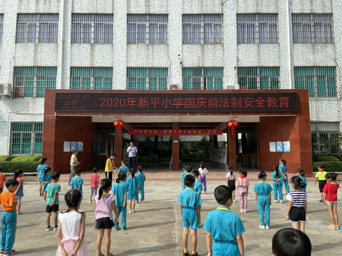 在喜迎国庆中秋双节之际,为更好地提高全校师生的法制安全意识,更好地保障全体师生的生命财产安全,新平小学于9月30日上午开展了国庆前法制安全教育活动,会议由公安警察吴警官主讲。