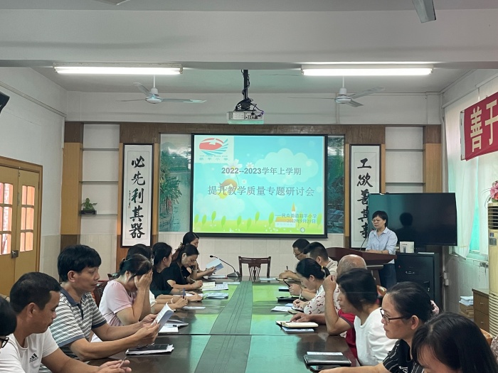 为深化课程改革,促进教师专业发展,保证教育教学质量持续提高,新平小学于2022年9月29日召开2022-2023学年上学期提高教学质量专题研讨会议,全体教师参加会议。