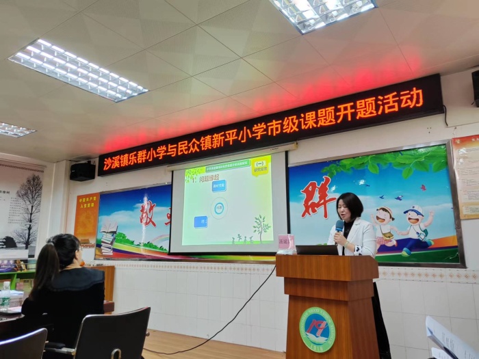 为响应“双减政策”,贯彻落实市教科研有关课题研讨事项要求,进?步提高小学英语教师作业设计能力,提高学生完成作业效率,2023年3月17日上午,中山市沙溪镇乐群小学、民众街道新平小学在乐群小学会议室举行有关小学英语“单元整体”及“项?式”作业设计的市级课题开题报告会活动。