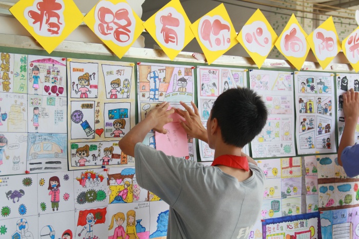 活动过程中,还展出了同学们前期创作的心理漫画、心理手抄报作品,结合同学们面对疫情产生的情绪问题,提供了很多心理调适的小技巧。