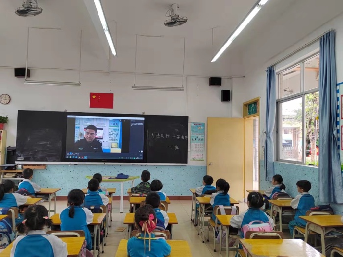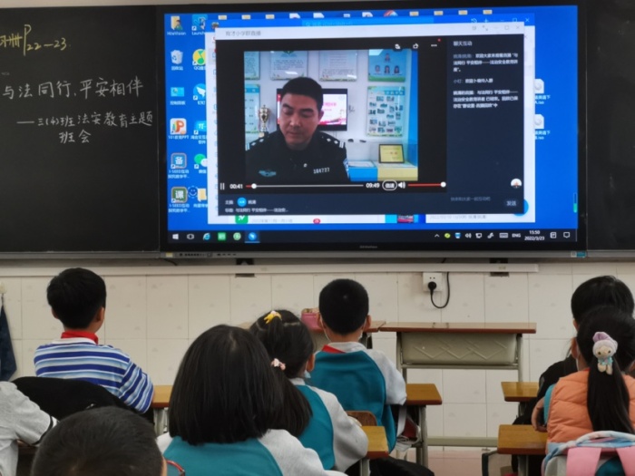 民众公安分局民警梁敬添法治副校长到育才小学进行普法教育,本次活动中,他从日常生活中常见的安全问题开始给大家做讲座。如交通安全、疫情防控问题对学生们进行教育,提倡“小手拉大手,文明共出行”,自觉佩戴头盔和口罩,并注意提醒家长遵守交通法规。梁警官还特别强调学生注意防溺水安全、用电安全、网络安全及如何正确拨打110报警电话等事项。最后,梁警官提醒孩子们在日常要注意不购买和食用没有合格标志的食物或饮料,不购买来路不明的食物或饮料等。