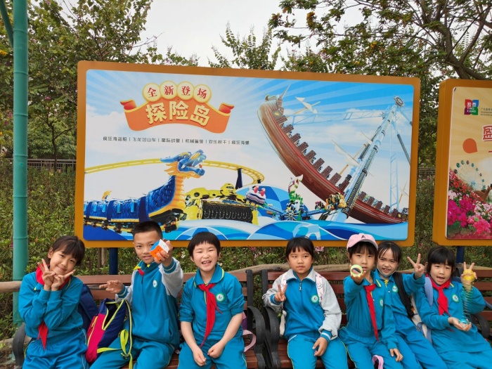 还在回味着南海博物馆的文化,汽车就把同学们送到了研学的第二站——佛山盈香生态园。一进园内,清新的空气迎面扑来,五彩斑斓的花海,各具特色的场景布置,使大家心旷神怡。赏春景,闻花香,听鸟声,感受大自然的美好,到处洋溢着快乐的气息。午餐后,同学们开始在盈香生态园里尽情玩耍,有的参观鸟巢科普园、进行小动物喂养,有的畅玩景区内各种各样的机动游戏,有的穿梭在彩虹花田、春天农场和宝巾花园,纷纷用照片定格每一个幸福快乐的瞬间,还有的去探秘玻璃桥的高险,享受九寨水城的舒畅。难忘盈香园之旅给孩子们留下了美好的回忆。