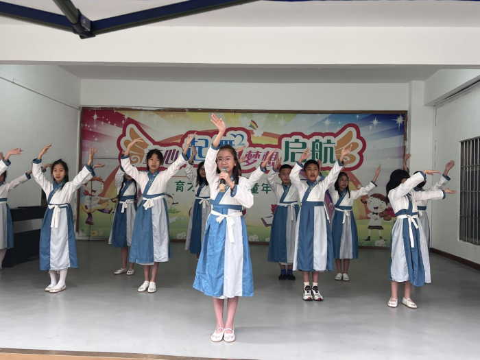 启动仪式上,杨岚校长发表了热情洋溢的读书月开幕式致辞,宣读了学校读书月活动方案,向全体同学提出了读书月的目标、意义和重要性。杨校长希望全体同学以读书月为契机,积极参与各类读书活动,养成读好书、好读书的习惯;以书为伴,以书作舟,一起遨游书的海洋;杨校长一句句经典之语回荡在育才小学上空。接着,老师代表激情澎湃地朗诵了诗歌《读中国》,文与声,诵与情,老师们用新的方式阅读!给同学们一个读书示范,点燃了学生读书的热情。春日下,书角里,舞台上,最后登场的是五(1)班同学的表演,古诗吟诵《别董大》和《早发白帝城》。这项表演将开幕式推向了高潮。五(1)班同学传统优美的服装,字正腔圆的诵读,别具风格的吟唱,形神兼备的舞姿让同学们陶醉了。他们都感叹道:“原来书还可以这样读”。