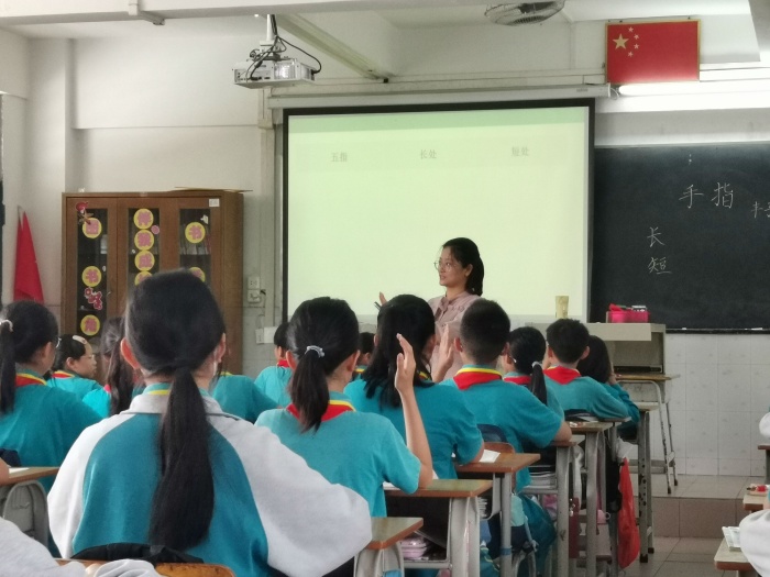民众中心小学徐光燕老师代表民众街道参加本次赛事。课堂上,徐老师紧扣单元语文要素“风趣”,带领学生走进丰子恺的《手指》一课,在品文、析词、赏句中感受作者幽默的文笔,领略五指有趣的神韵。在此基础上,徐光燕老师运用学法迁移,指向段落化练笔,指引着学生仿照课文表达特点,选写五官特点。课堂上师生互动、生生互动自然和谐,获得了在场评委的一致好评,并最终荣获本次阅读教学大赛一等奖。