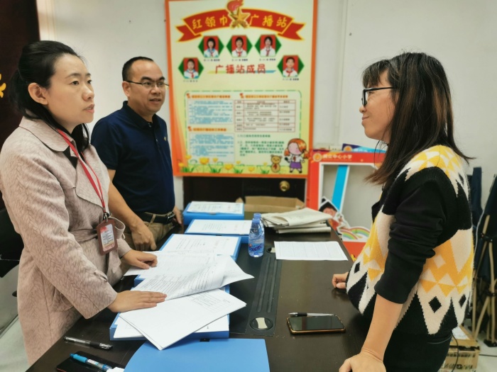两位督学采用校园巡查、查阅资料、教师访谈等多种方式深入校园进行实地督导检查,详细了解民众中心小学“五项管理”工作落实情况。在巡视校园之后,督导组就落实“五项管理”具体工作的情况听取了民众中心小学马耀强校长的报告。马校长围绕学生作业、睡眠、手机、课外读物、学生体质管理等方面的内容作了详细汇报。