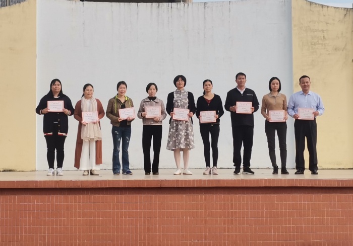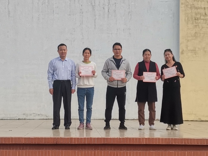 10月25日上午,民众中心小学马耀强校长对十八位教师进行了颁奖。许妃五、关朋伟两位老师被评为卓越教师,王银娣、陈丽珍、刘海华、黄翠碧四位老师被评为学科带头人,黄彩红、梁玉琴、冯杏燕、黄雪莲、梁二妹、余莹瑾、冯华志、潘春茹、陈秀娟、招转玲十位老师被评为骨干教师,向英、卢晓敏两位老师被评为教坛新秀。