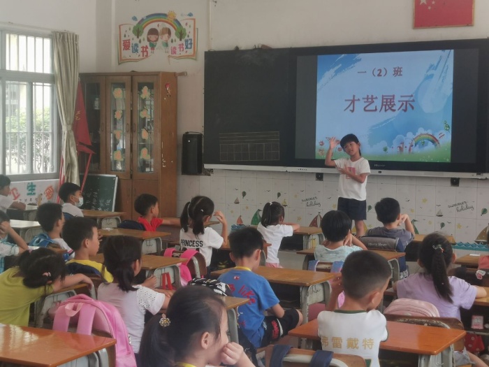 8月28日孩子们在老师的带领下,进行了队列训练,并且进入操场熟悉出操位置。下午学生进行才艺表演,他们唱歌、跳舞、讲故事展示出儿童勃勃生机,获得了台下同学们的阵阵掌声。