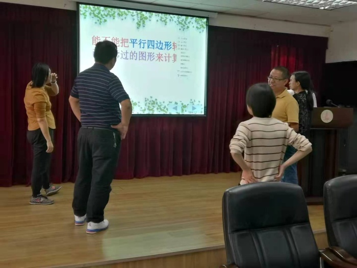 学校数学科组在科组长的带领下,组织全组成员出谋献策,集思广益。针对目标预设和达成、教学内容、教学活动、教学方式、教学评价五个方面进行研磨。从研读教材、到课件制作、教具和学具的准备、试教、评课,都充分展示了数学科组团结协作的精神。评课中,老师肯定了试教中的一些优点、亮点,同时也提出了一些中肯的改进意见,再进一步的调整教学思路和完善教学课件。最后,黄桂香老师出色地完成了比赛项目,荣获镇一等奖的好成绩。