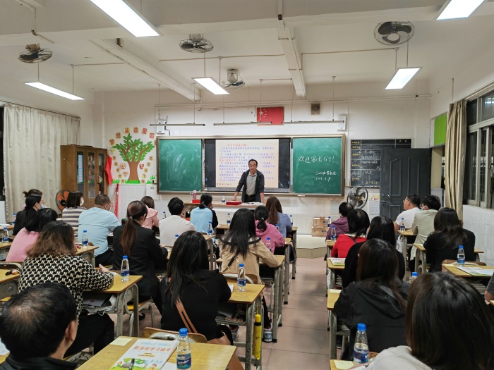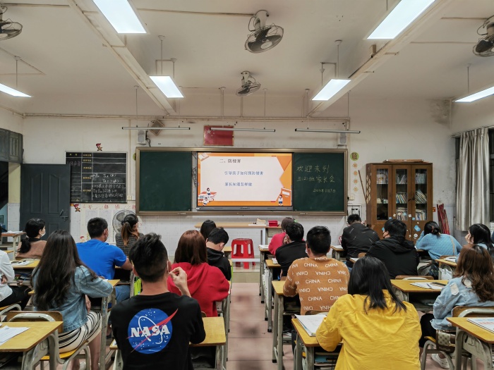 家长会上,首先由杨良萍主任作家庭教育培训讲座及进行安全教育。杨主任向所有家长解读《广东省中小学家庭教育亲子沟通指引》,包括充分认识家庭教育中亲子沟通的重要作用、家庭教育中亲子沟通的基本认知、亲子沟通的基本原则、亲子沟通十个“禁忌”、亲子沟通中孩子喜欢听的十种表达等方面,并有针对性地播放家庭教育视频,使家长们对亲子沟通有更多认识,提高教育孩子的能力,让孩子得到良好的家庭教育。另外,杨主任就防溺水、防侵害、交通安全、心理健康、用电用火安全、食品安全等方面也提醒广大家长在日常生活中注意引导孩子。