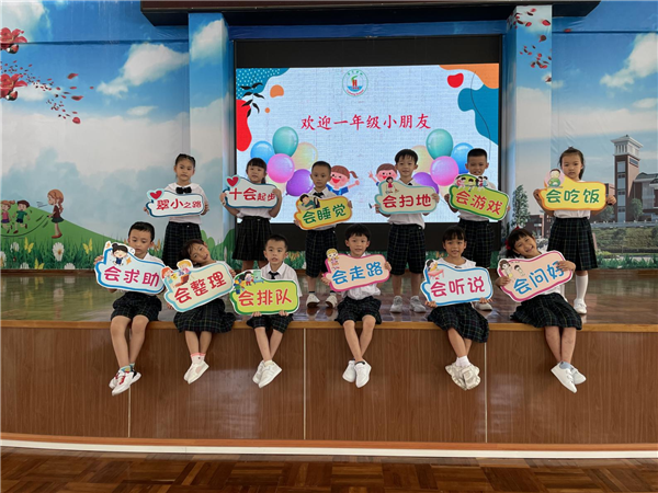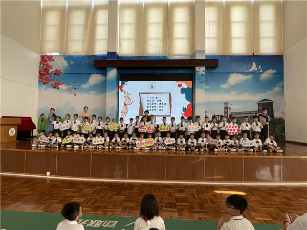 首先,袁少平校长进行了热情洋溢的新学期致辞暨思政第一课,回顾暑期重大事件:河南暴雨、疫情防控、东京奥运会、“双减”政策,感悟华夏子孙面对困难无所畏惧的精神品质,勉励大家要努力成为新时代背景下有目标、会学习的学生。紧接着对刚入学的一年级新同学表示欢迎,在袁校长的谆谆教诲中,一年级新生喊着整齐激扬的口号亮相。嘹亮的口号声,昭示着新的学期,他们已经准备好成为一名自信的小学生了。