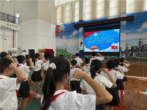 盛开的花卉沐浴晨光,翠亨小学如期迎来开学日,沉寂了一个暑假的校园变得活力满满。2021年9月1日上午,翠亨小学全体师生在艺体馆隆重举行以“童心向党 强国有我”为主题的开学典礼。
