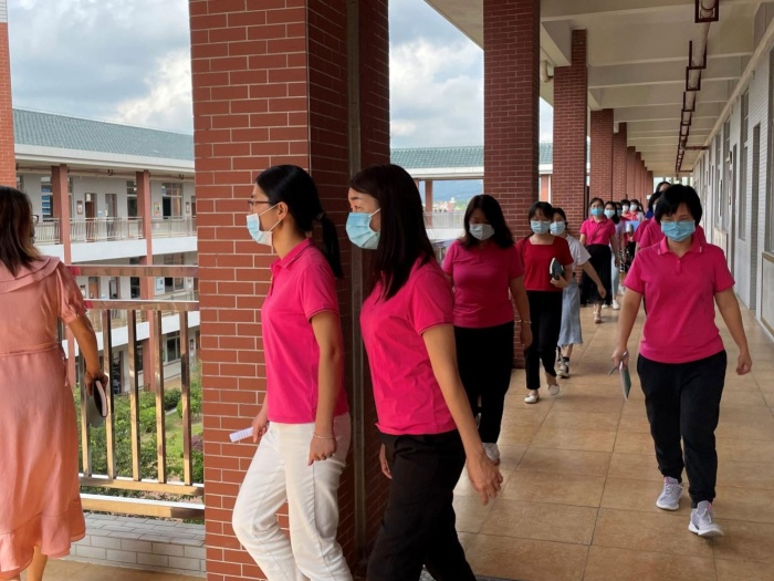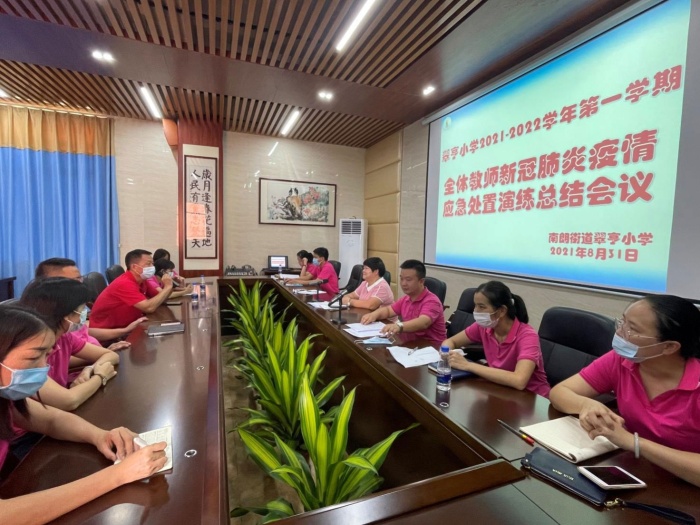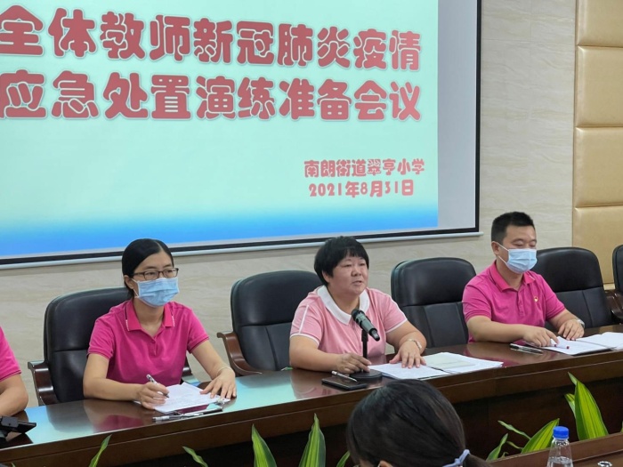 为严抓校园安全管理,做好疫情防控工作,全面提升疫情防控组织协调和应急处置能力,2021年8月31日上午,翠亨小学全体教师、职工代表以及六(1)班部分学生代表在学校里举行了新冠肺炎疫情应急处置演练。