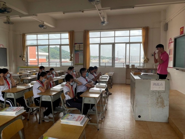 一切准备工作就绪后,袁校长宣布:翠亨小学新冠肺炎疫情应急处置演练现在开始。师生们按各自扮演的角色各就各位。