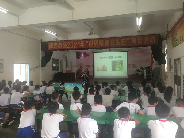 2021年10月10日是第30个“世界精神卫生日”,今年的主题是“青春之心灵 青春之少年”。为加强精神卫生宣传教育,帮助儿童青少年掌握心理健康知识,提升心理调试能力,协助家长树立科学的教育理念,帮助孩子正确认识、处理碰到的情绪问题,引导动员全社会共同参与心理健康促进行动,2021年10月9日上午,南朗街道卫健分局在横门小学举办2021年“世界精神卫生日”宣传教育活动。
