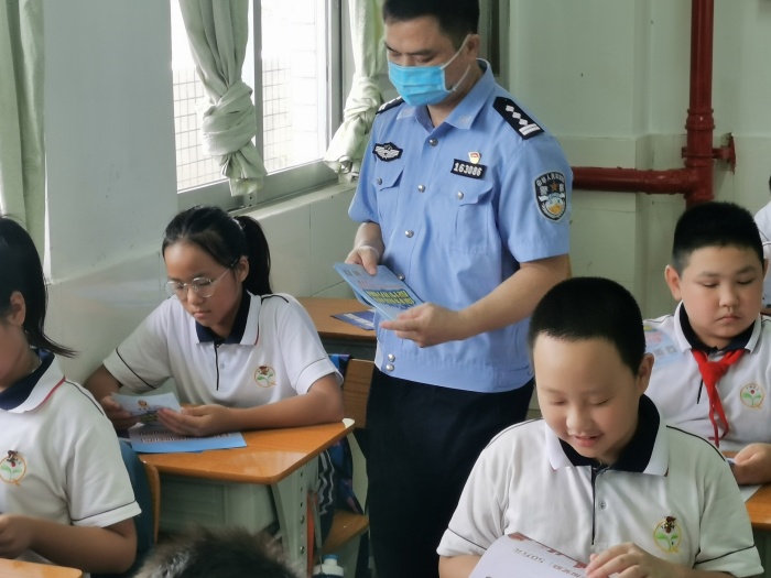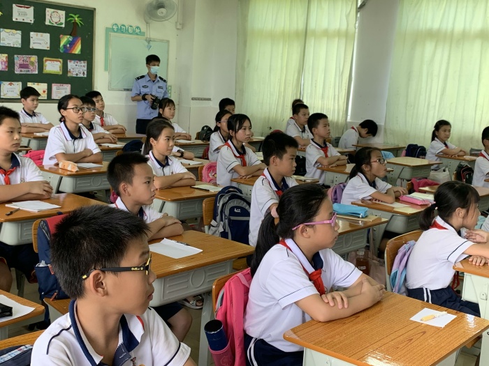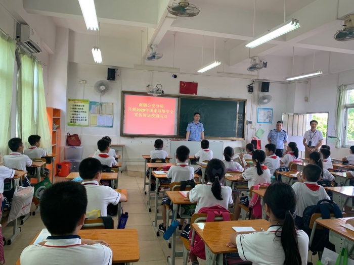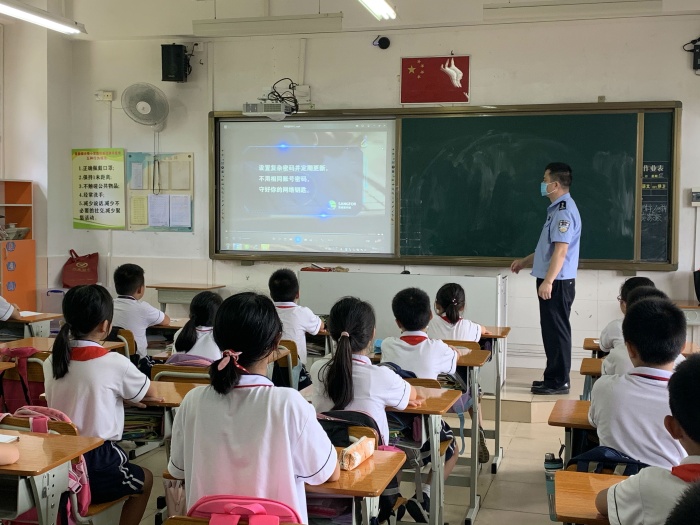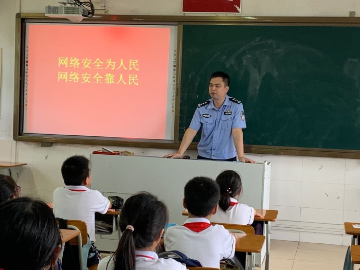 为深入开展网络安全知识,提高青少年的网络安全意识和防护技能,让网络安全走进校园,9月17日下午,南朗公安分局指挥中心教导员陈伟荣以及巡警大队指导员甘源如为南朗镇云衢小学五4中队开展了网络安全宣传活动。