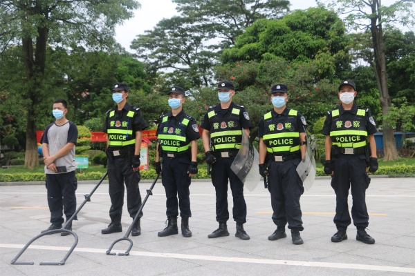 当天上午10:00,南朗镇巡警大队黄旭辉队长、二中队长谭锡清教导员带领巡警队的治安培训干警一行人到达云衢小学,他们检查了学校保安设备情况,了解保安队伍的现状,安排本次培训的要求,并开展了演练部署。