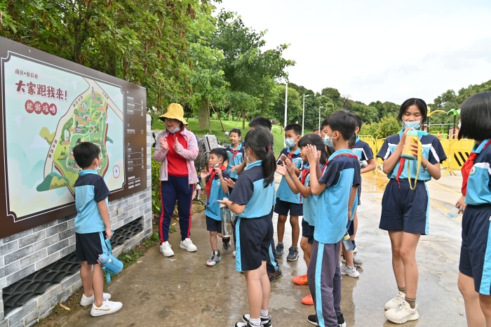 一路上萦绕着孩子们的欢声笑语,老师和学生们甚是憧憬。到达公园后,同学们首先聆听了汤璇萍副主任对寮后村历史文化的详细介绍。