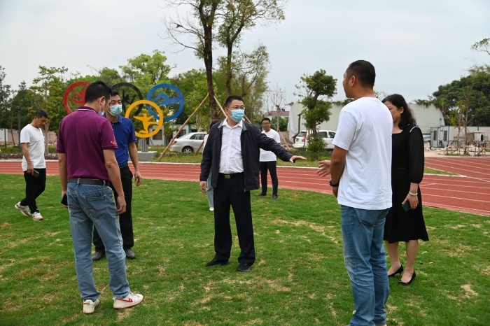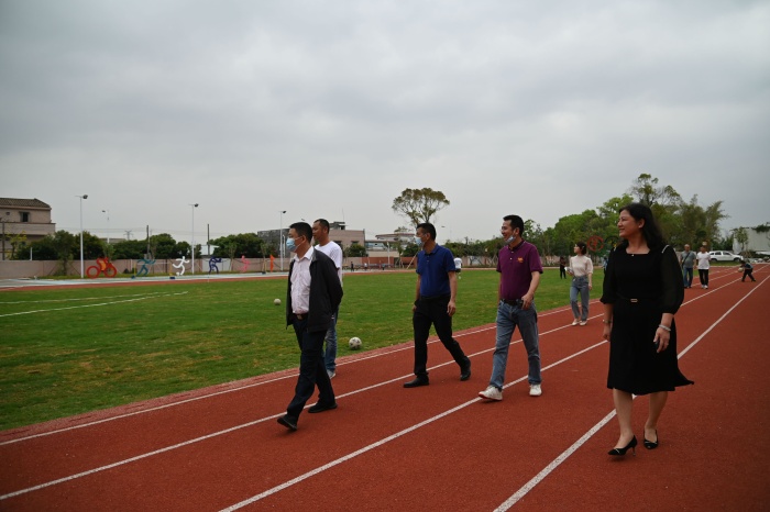 谢主任一行怀着对学校的关切之情,对该校校园环境和学校建设进行了视察。调研组首先实地察看学校足球场,亲自感受足球场的草坪铺设情况,随后查看了图书馆内外环境及室内运动场和学校食堂厨房的硬件设施。谢主任指出,学校必须在校园绿化建设上下功夫,努力创建高雅校园,发挥校园环境对学生教育的熏陶和启迪作用。在察看室内运动场时,谢主任不仅关注消防设施,还结合南方雨季较多的特点,针对室内运动场外的遮雨棚搭建对施工方提出了各种可行方案。在察看厨房时,谢主任重点强调要做好防鼠防蟑螂的措施,时刻把师生的健康安全摆在第一位。