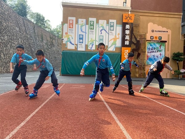 旱地轮滑项目和冬奥会的滑冰项目互相呼应。学校组织开展“我运动,我健康,我快乐”轮滑比赛。给学生带来真切的冬奥运动体验,促进学生身心健康发展,让同学们更好地感受运动的魅力。除此之外,学校还组织了“我为冬奥会加油”绘画创作活动。同学们用七彩画笔共同支持冬奥,为充满寒意的初冬增添了许多温暖。