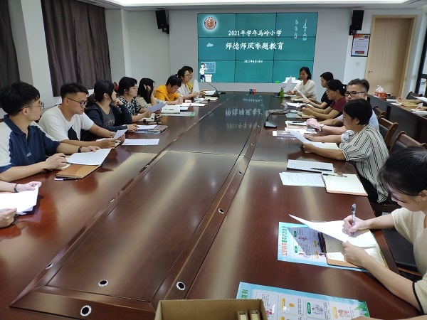 为深入学习贯彻习近平总书记关于教育的重要论述和教师队伍建设的重要指示精神,落实教师思想政治和师德师风建设重点任务,打造一支具有良好师德的教师队伍,进一步落实立德树人的教育任务,加强学校师德师风建设,2021年8月30日下午,马岭小学组织全体教师进行了师德师风建设专题教育学习。