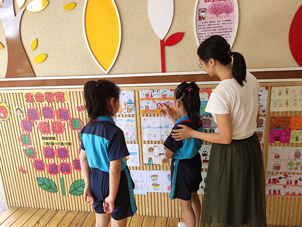 6月16日,根据种植过程所发生的事情,心理老师和班主任共同编写一本有故事情节的照片集作为生命教育的校本课程,并进行了植物成长绘画作品成果展。同学们在作品中画出了植物娃娃的成长过程,也画出了自己心目中植物娃娃未来的样子。