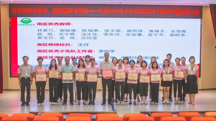 迎接党的二十大,培根铸魂育新人。在全国第38个教师节来临之际,带着对教育事业的关心和对人民教师的关爱,南区街道党工委书记吴翘楚在党工委钟季媛委员和区教育和体育事务中心梁志东主任的陪同下,于9月9日上午看望、慰问竹秀园中心小学教职员工。