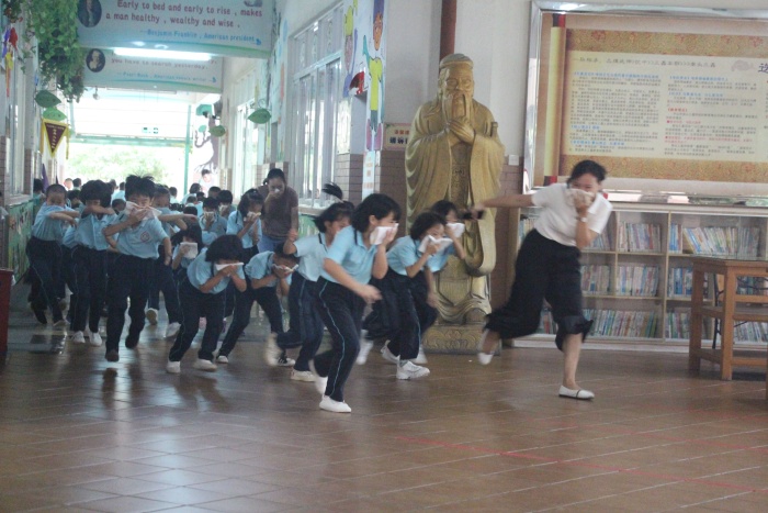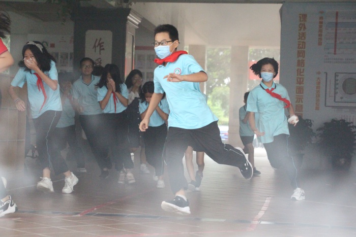 8时50分,各楼层突然浓烟四起,警报声响彻校园,各位老师按照预案的要求各就各位,所有学生在老师的组织下,迅速把毛巾或纸巾打湿,按照平时指定的路线弯腰前进,有序疏散到了安全的地点。