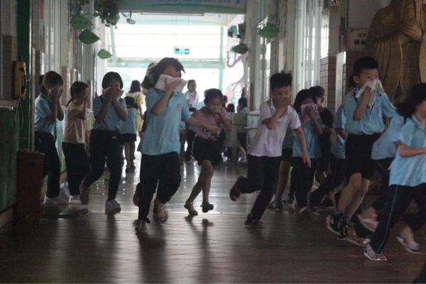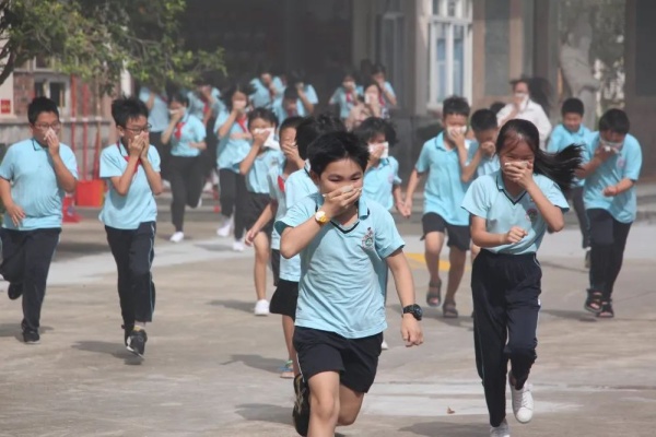 此次消防演习,是在学生完全不知情的情况下举行的,让活动的实际效果更加明显。8时50分,各个楼层突然浓烟滚滚,刺耳的警报声传来,各位老师按照预案的要求各就各位,所有学生在老师的组织下,迅速把毛巾或纸巾打湿,按照平时指定的路线弯腰前进,有序疏散到了安全的地点。