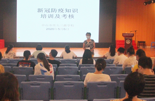学生即将返校,为了把防疫工作落到实处,让所有教职员工掌握最基本的防疫知识,增强防疫技能,2020年5月6日上午,南头三鑫学校在报告厅举行了一场生动的防疫工作培训会,校医室张萍老师给大家进行了系统的培训,全校教职员工员工参加了培训,活动取得了良好的效果。