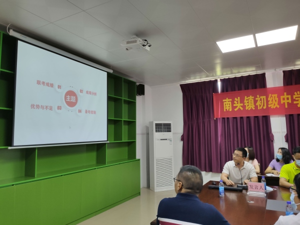 随后,南头镇初级中学卢新泉校长对镇党委政府一如既往地重视初中教育教学工作表示感谢,并作出表态性发言:一是坚定中考取得优异成绩的信心。二是教师要以关怀和关爱解决绝大部分学生的心理焦虑问题,三是各学科互相学习,借鉴其他学科好的备考经验,共同进步。四是借助各种力量,收集备考信息,研究备考变化,把握备考方向。