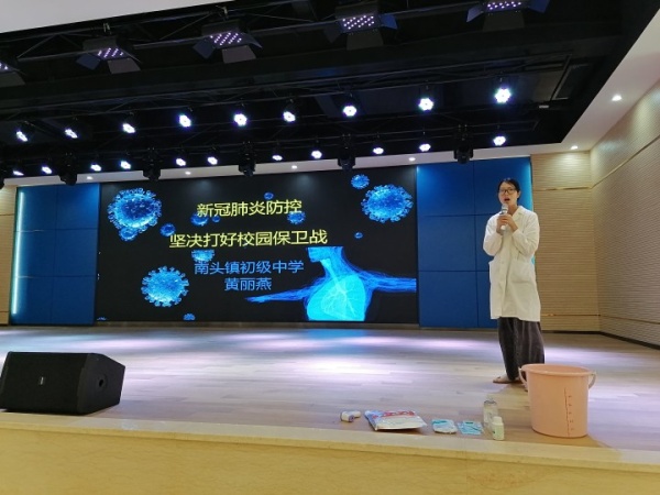 最后,学校校医对教师们进行了专题培训,内容包括新冠肺炎的了解、师生员工个人防护、学校防控管理、健康防护技能等四大方面就新冠肺炎传染途径、校园个人卫生、环境清洁卫生、日常预防性消毒、随时消毒、终末消毒、常见消毒剂及配置、学校复课后日常防控措施、学校重点场所防控指引、预案的制定和应用等方面。
