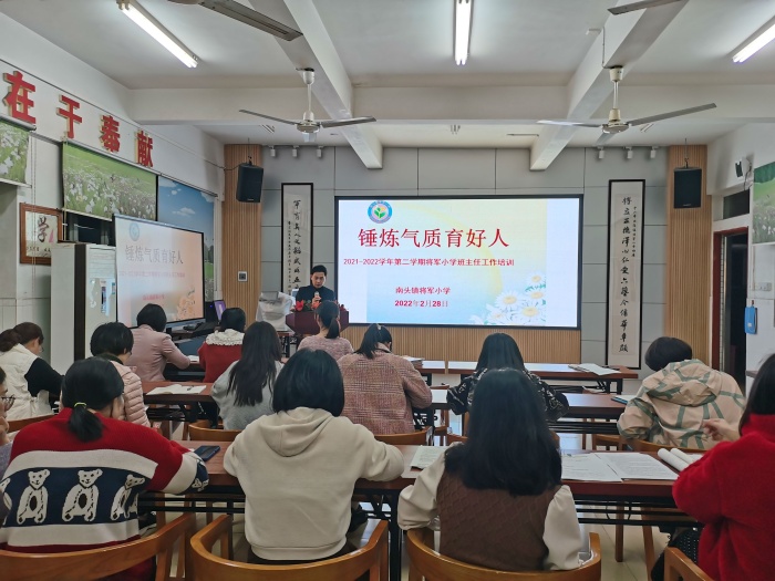 为进一步提高班主任业务素养,强化班级管理,更好地推动新学期班主任各项工作的开展,2月28日下午,南头镇将军小学在大会议室开展2021-2022学年第二学期将军小学班主任工作培训。
