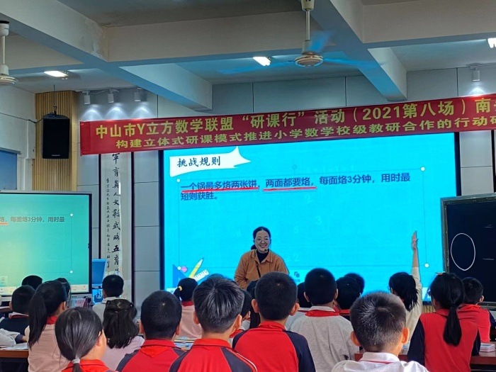 11月17日下午,中山市Y立方数学联盟“研课行”活动(第八场)暨“构建立体式研课模式推进小学数学校际教研合作的行动研究”活动在南头镇将军小学顺利开展。活动由中山市Y立方数学联盟主办、南头镇将军小学承办。中山市Y立方数学联盟代表曾鹏主任、中山市教育督导吕鉴添出席并指导,黄圃镇对甫小学的巴海璇老师以及三乡镇大布小学的刘坤老师作课例展示。在数学科组长梁旭锋的带领以及学校各方面工作的支持下,将军小学圆满地承办了本次校际教研活动。