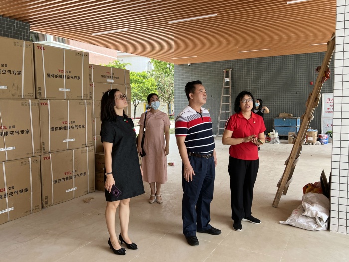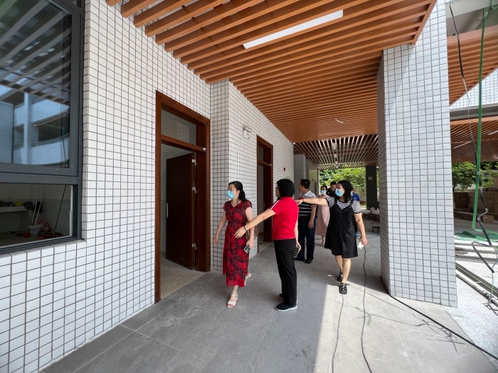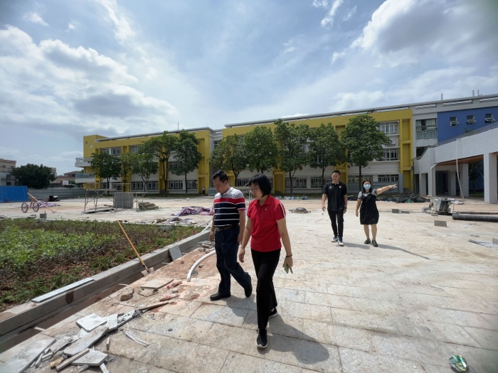 2022年9月2日上午,南头镇教育和体育事务中心谢桂华主任,教研员梁柳珍、郭淑娟、张月音、黄再玲、姚利芳一行来到将军小学新综合楼工地现场进行视察。将军小学校长胡映芬、副校长吴伟刚以及德育主任李宗强、德育副主任梁青娇等陪同视察。